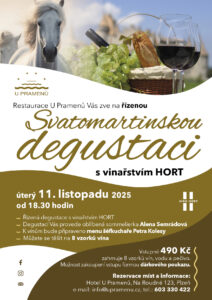 Vážení hosté, dovolte nám pozvat Vás na Svatomartinskou degustaci. Řízená degustace s vinařstvím HORT se bude konat 11.11.2025 od 18:30 hodin. Degustací Vás provede sommelierka