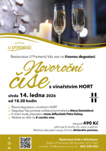 První degustace vín roku 2026 v restauraci U Pramenů je tady! 🥂 Dne 14.1.2026 společně pozdvihneme Novoroční číši se somelierkou Alenou Semrádovou z vinařství Hort
